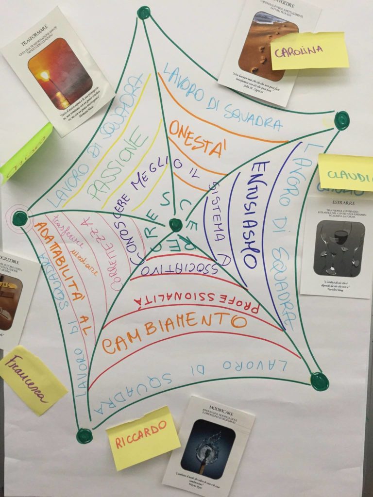 Uno dei percorsi che stiamo portando avanti riguarda il team work e in particolare il Creative Meeting Management, quindi la preparazione, la realizzazione e il follow-up di un particolare tipo di riunione, con la finalità di trovare idee sul miglioramento di processi o prodotti e le soluzioni a criticità organizzative.