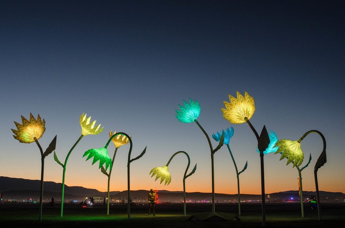 Avevamo lavorato per turni di 16 ore per installare il nostro pezzo d’arte, una serie di 10 fiori
