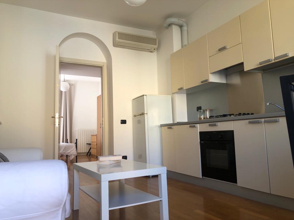 Il palazzo è dotato di servizio di portineria e doppi ascensori. Gli appartamenti si trovano al 3° piano su cinque e sono composti da ingresso su soggiorno con cucina a vista completa di elettrodomestici, lavatrice, lavastoviglie, forno e frigorifero. Una grande e luminosa camera da letto matrimoniale con bagno completo con box doccia. La casa è dotata di aria condizionata e riscaldamento autonomo.