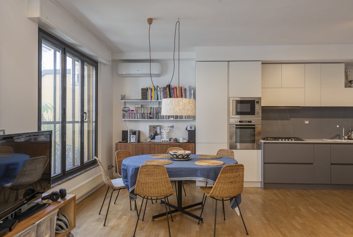 Posto a fianco del naviglio Pavese in una strada tranquilla e a senso unico questo delizioso appartamento è collocato al piano primo di una piccola palazzina di recente costruzione all’interno di un cortile condominiale di un palazzo edificato negli anni ’70