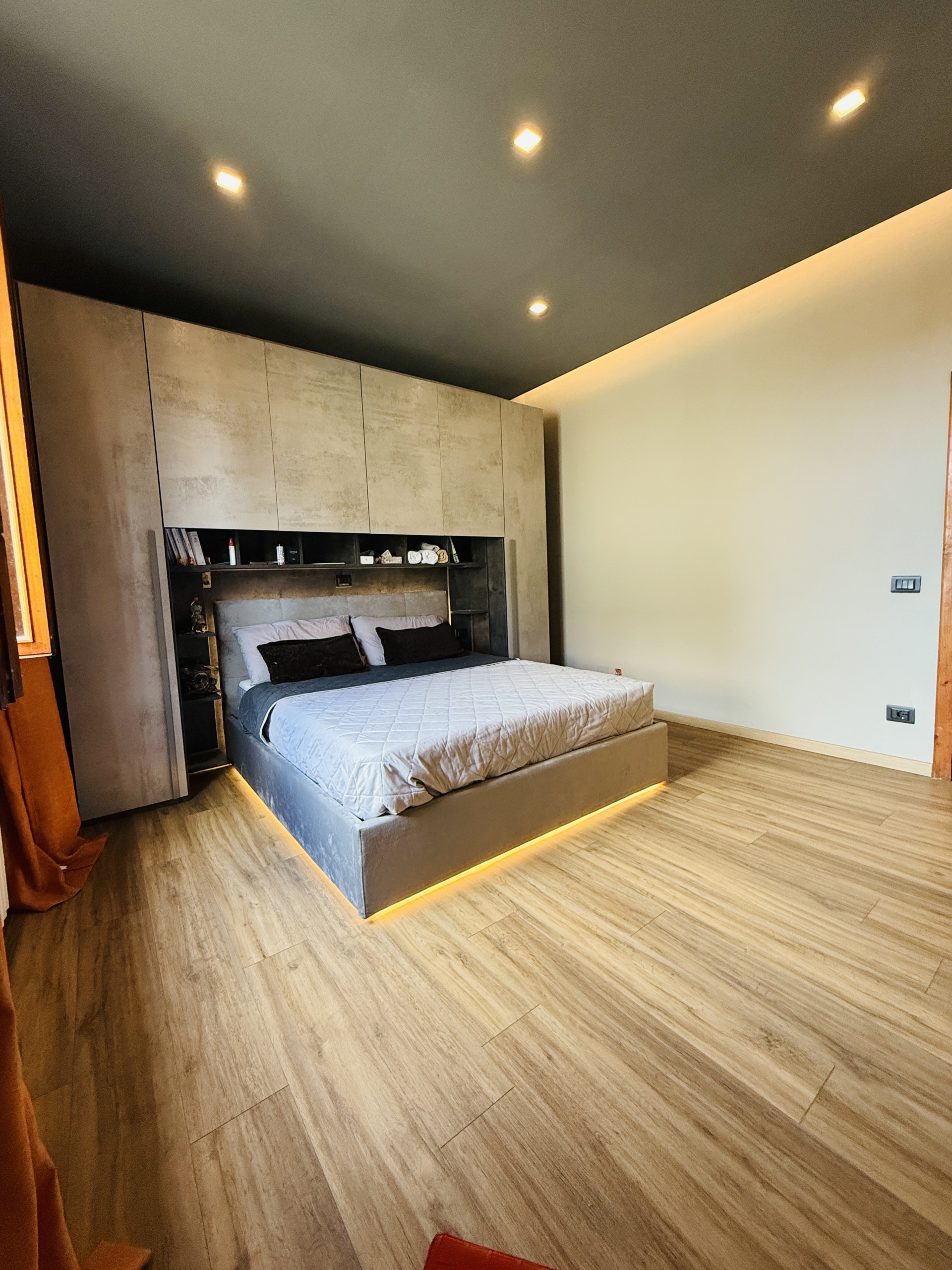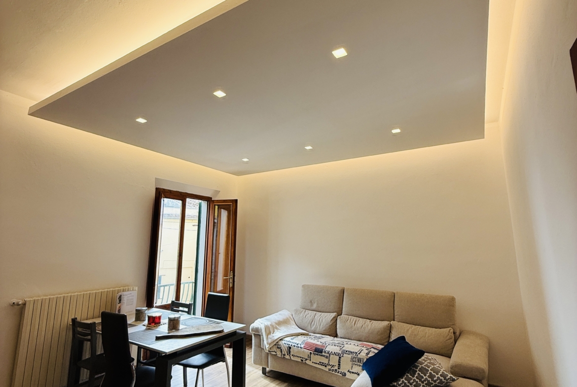 L’abitazione presenta un ampio soggiorno con cucina open space, perfetto per momenti di convivialità. Dal balcone si può godere di una vista incantevole sulla piazzetta, ideale per rilassarsi all’aperto.