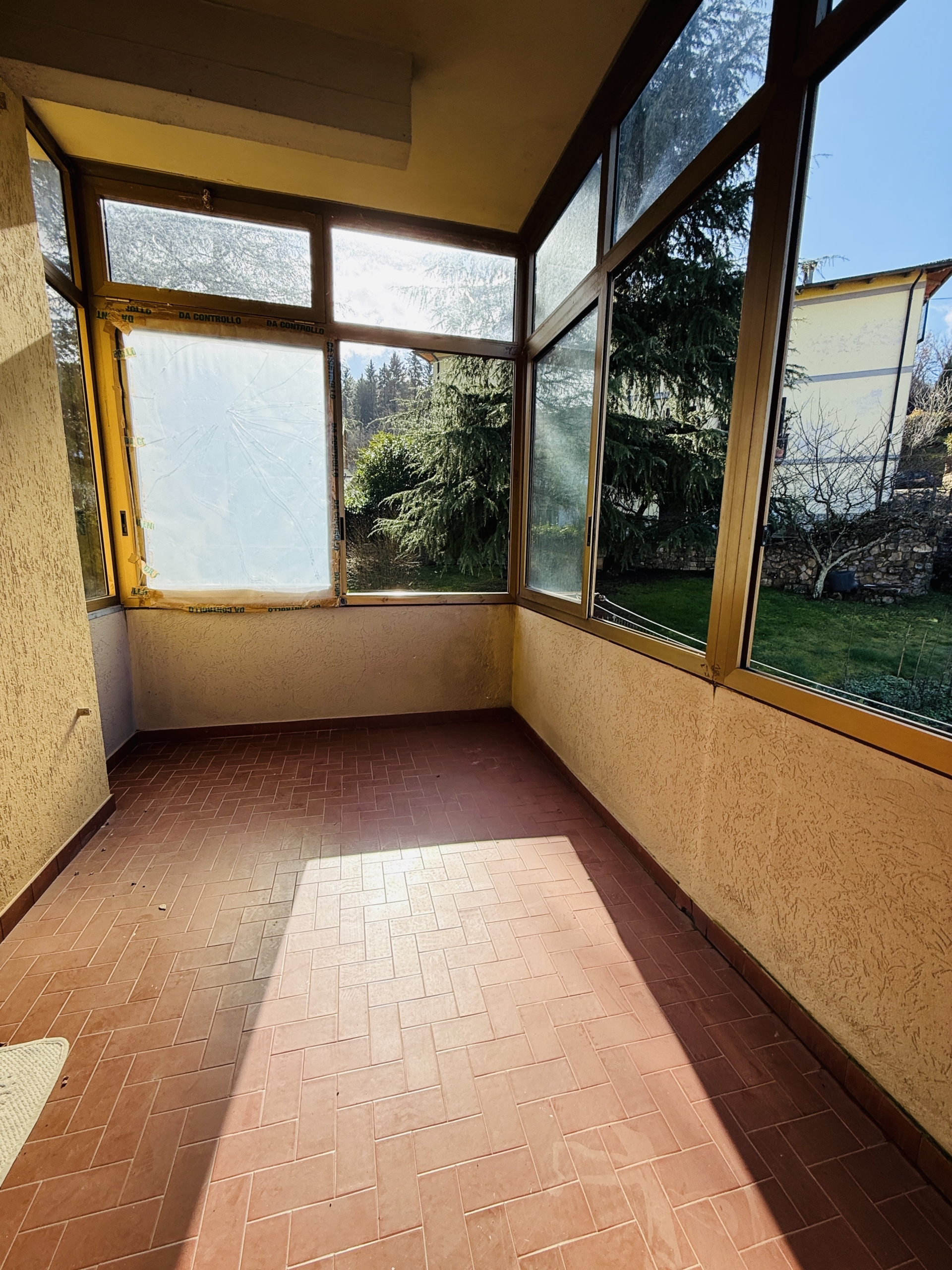 La cucina abitabile è dotata di un terrazzo e pilozzo, rendendola funzionale e accogliente. La zona notte è separata e comprende due grandi camere, una delle quali con veranda chiusa, oltre a una camerata o stanza studio. Gli spazi sono ben distribuiti.