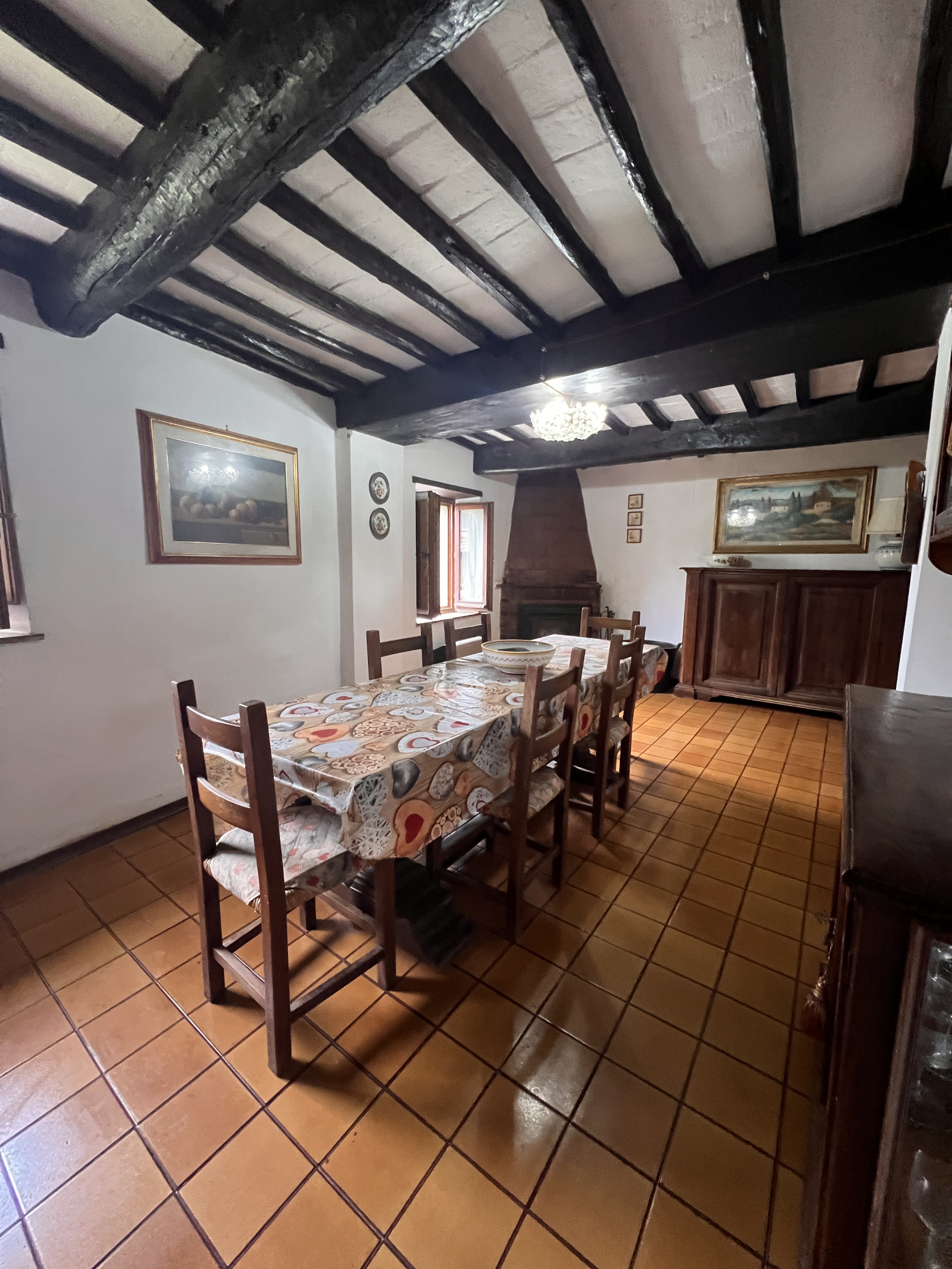 La proprietà vanta una spaziosa sala da pranzo con camino, perfetta per cene conviviali. La zona notte include una generosa camera matrimoniale, una cameretta e una stanza armadi. Il bagno è dotato di vasca per momenti di puro relax. Un angolo studio offre lo spazio ideale per lavorare o studiare in tranquillità.