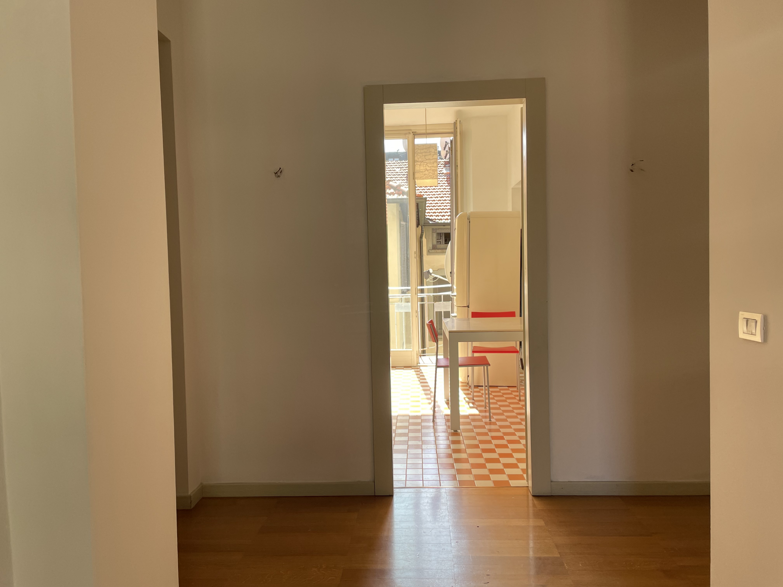 Il trilocale di circa 90 mq è composto da ingresso su soggiorno, cucina abitabile arredata con lavapiatti, due camere di cui la matrimoniale con armadio e parete già arredata, ed una camera singola, cabina armadio e bagno con finestra e box doccia.