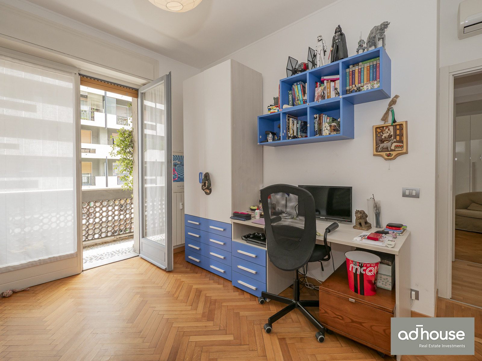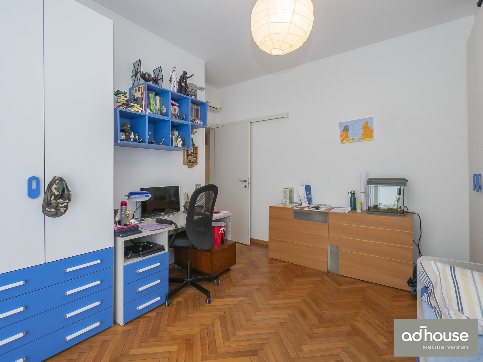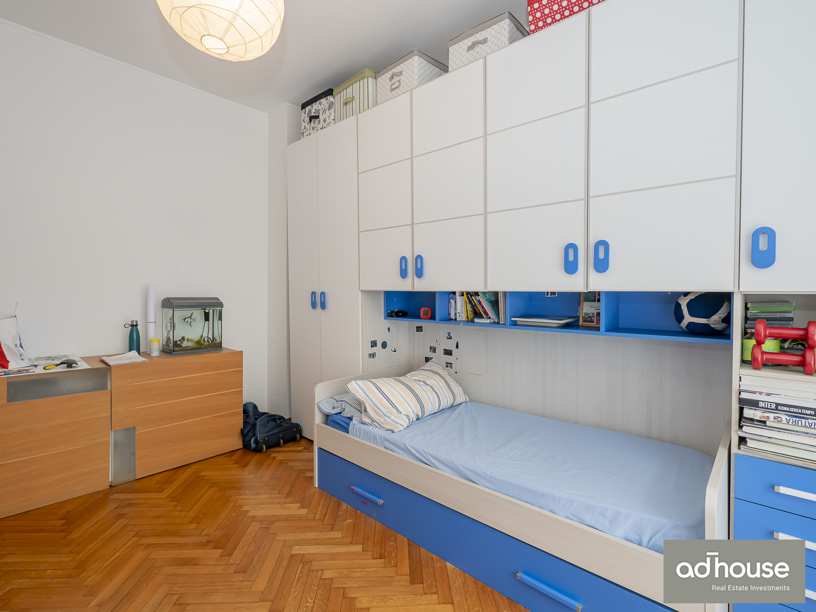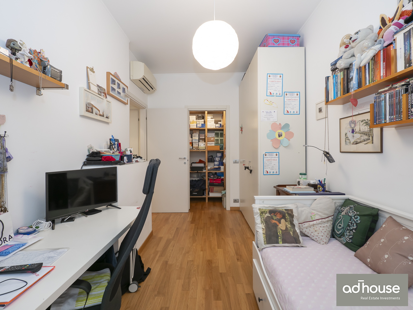 Una camera singola ma spaziosa con cabina armadio. Disimpegno con armadio, un comodo ripostiglio ed un ulteriore ripostiglio aereo. Una cantina completa questa offerta abitativa