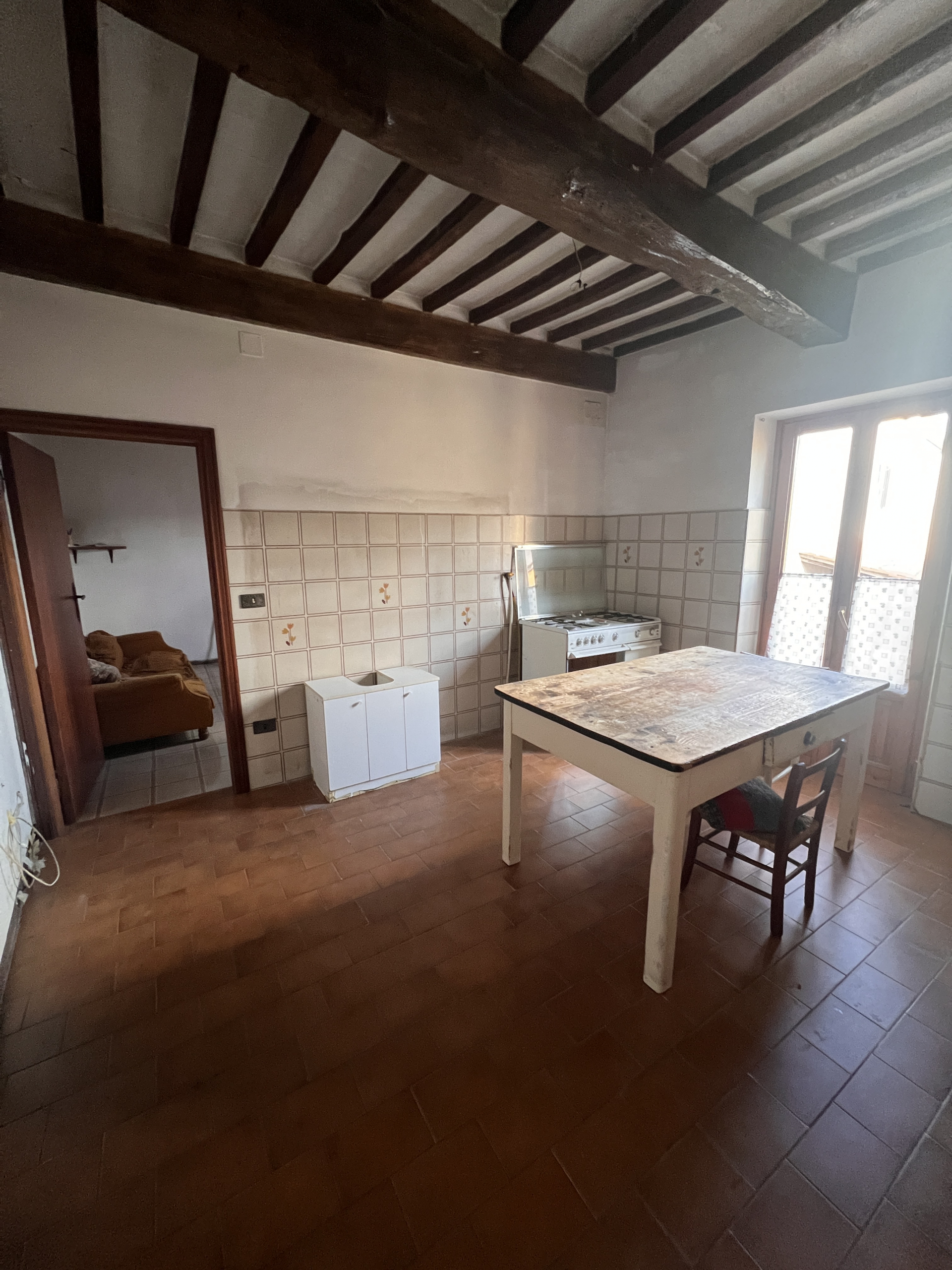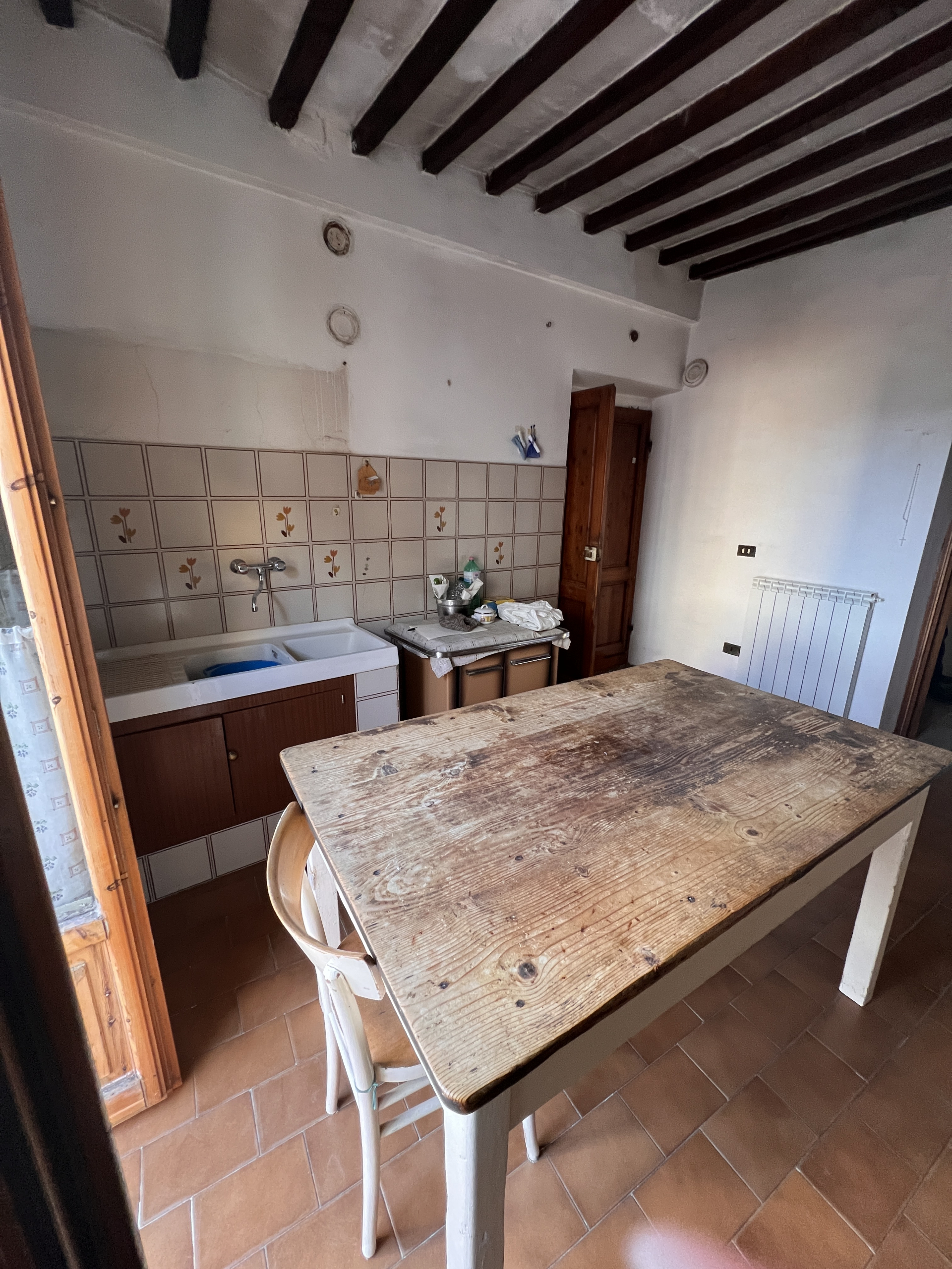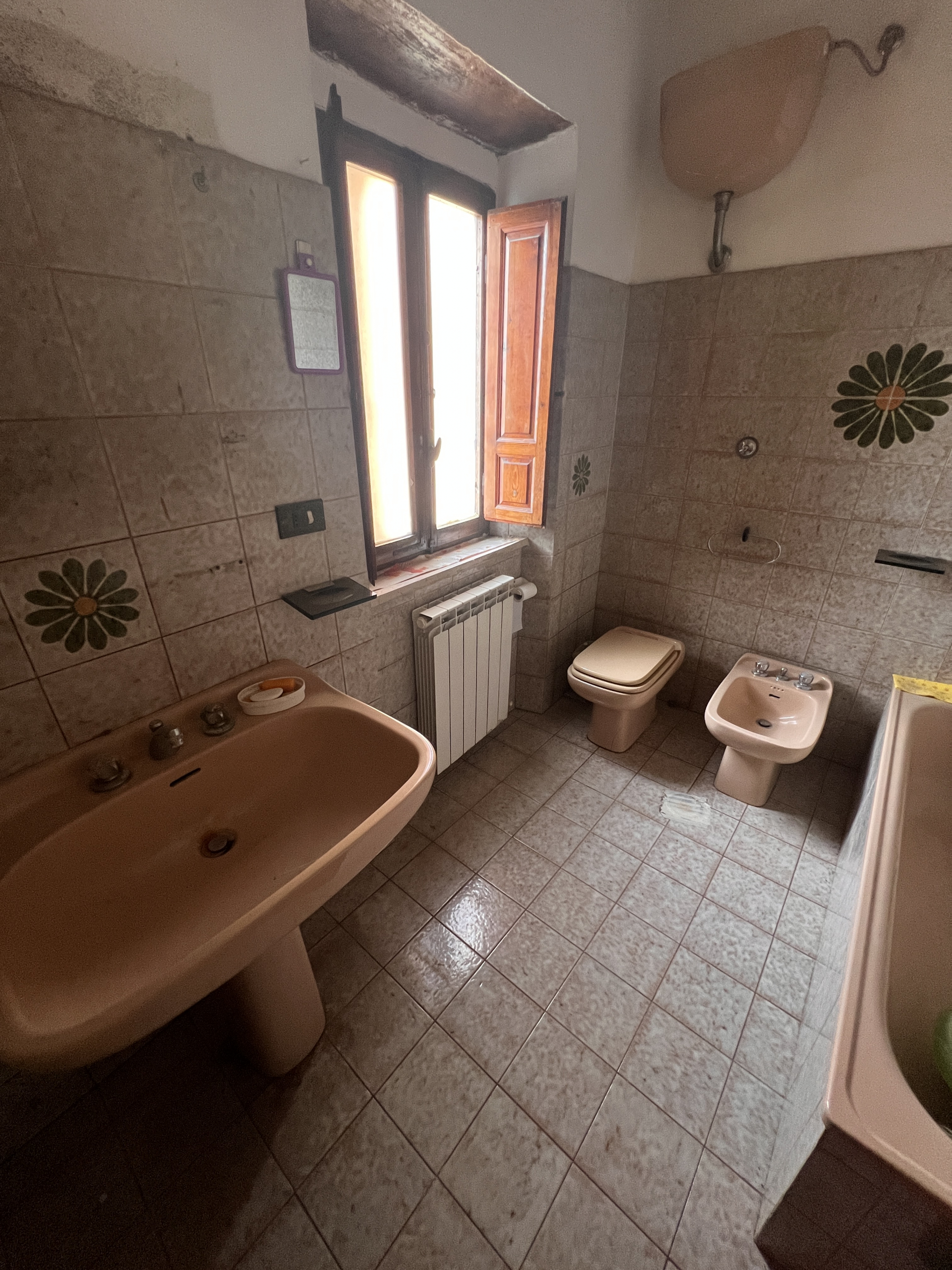 All’interno, troverai una spaziosa zona cucina con balcone, perfetta per godersi la colazione al sole del mattino. La zona soggiorno è separata da un muro, ma c’è la possibilità di rimuoverlo per creare un’ampia zona living open space. La zona notte comprende due camere da letto e un grande bagno in stile anni ’70, che offre un tocco di nostalgia e carattere. Gli impianti sono funzionanti ma necessitano di un rimodernamento per adattarsi ai gusti moderni.