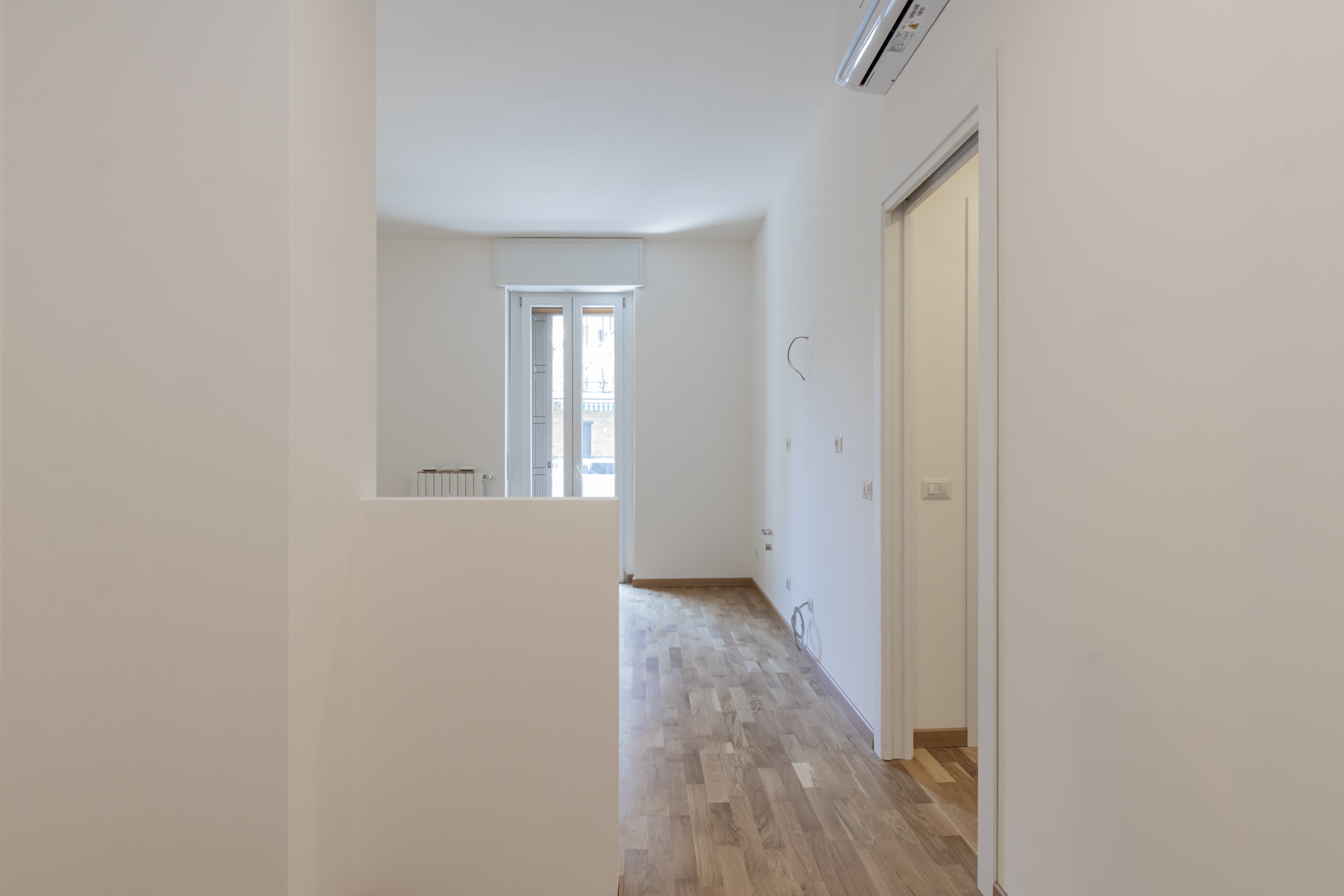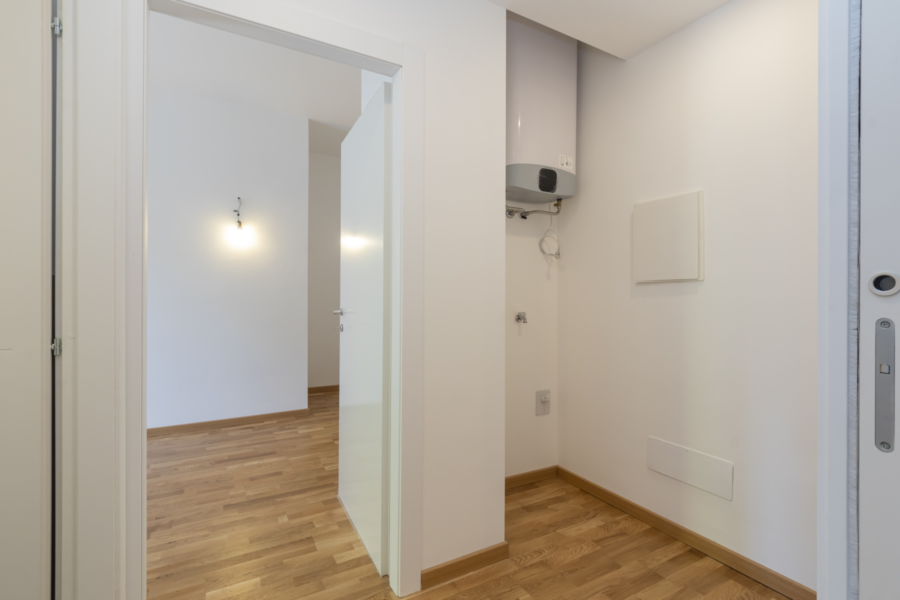 Disimpegno verso la camera da letto adibito a ripostiglio con allaccio per la lavatrice