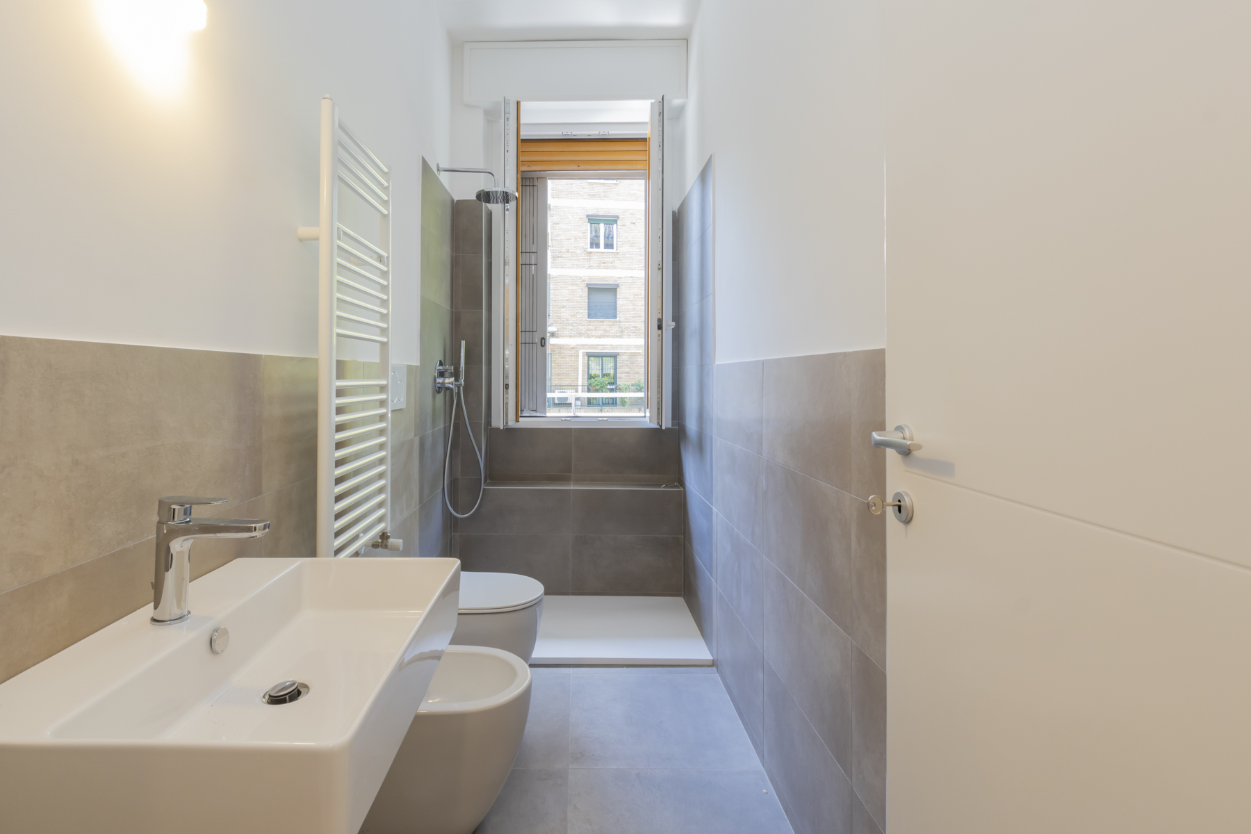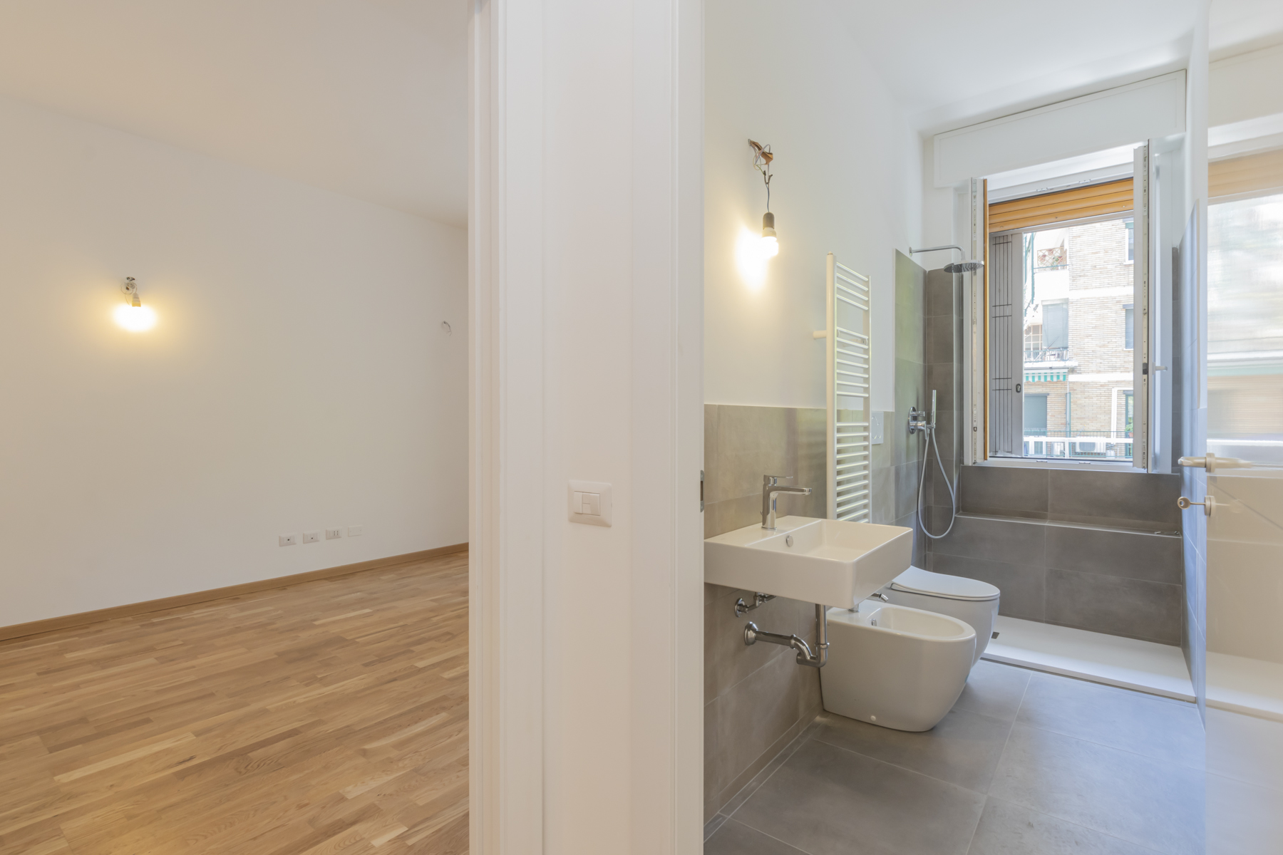 Bagno finestrato con ampia doccia. Camera matrimoniale con porta finestra (90/245) e accesso al balcone. Spazio per cabina armadio e/o zona smart working.