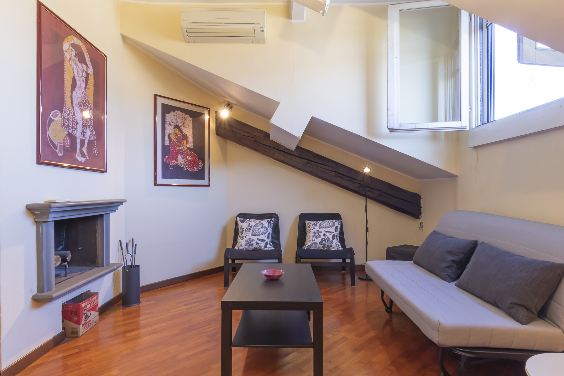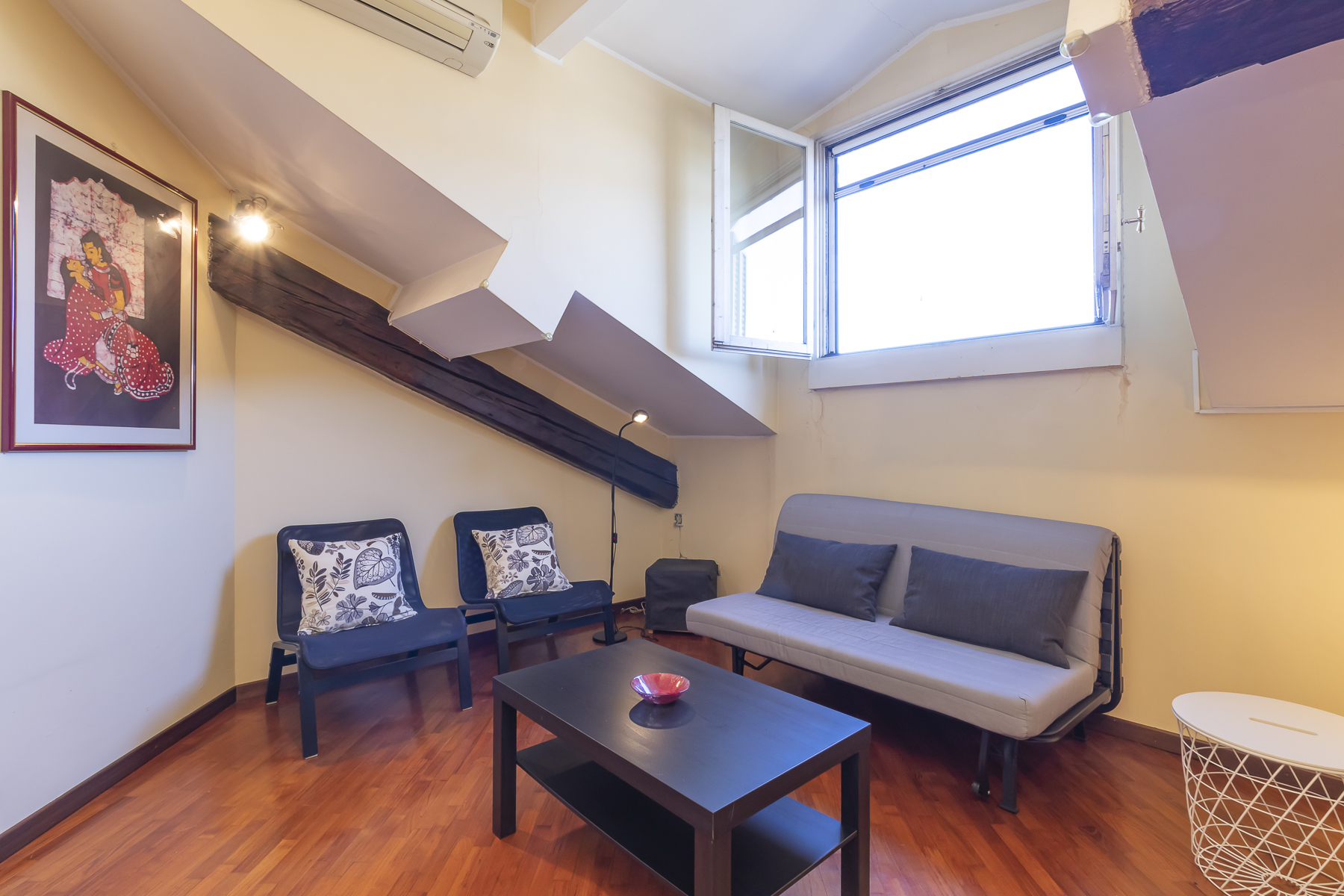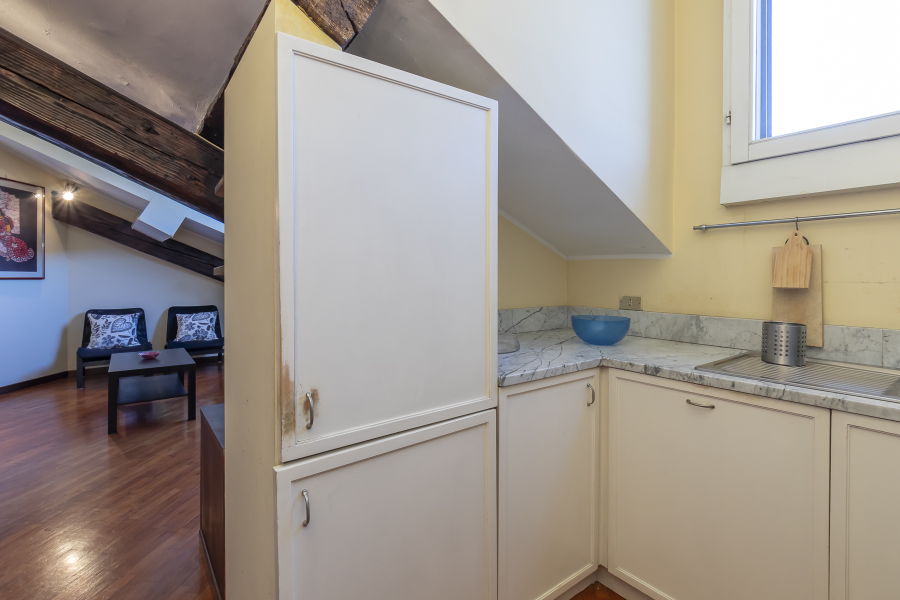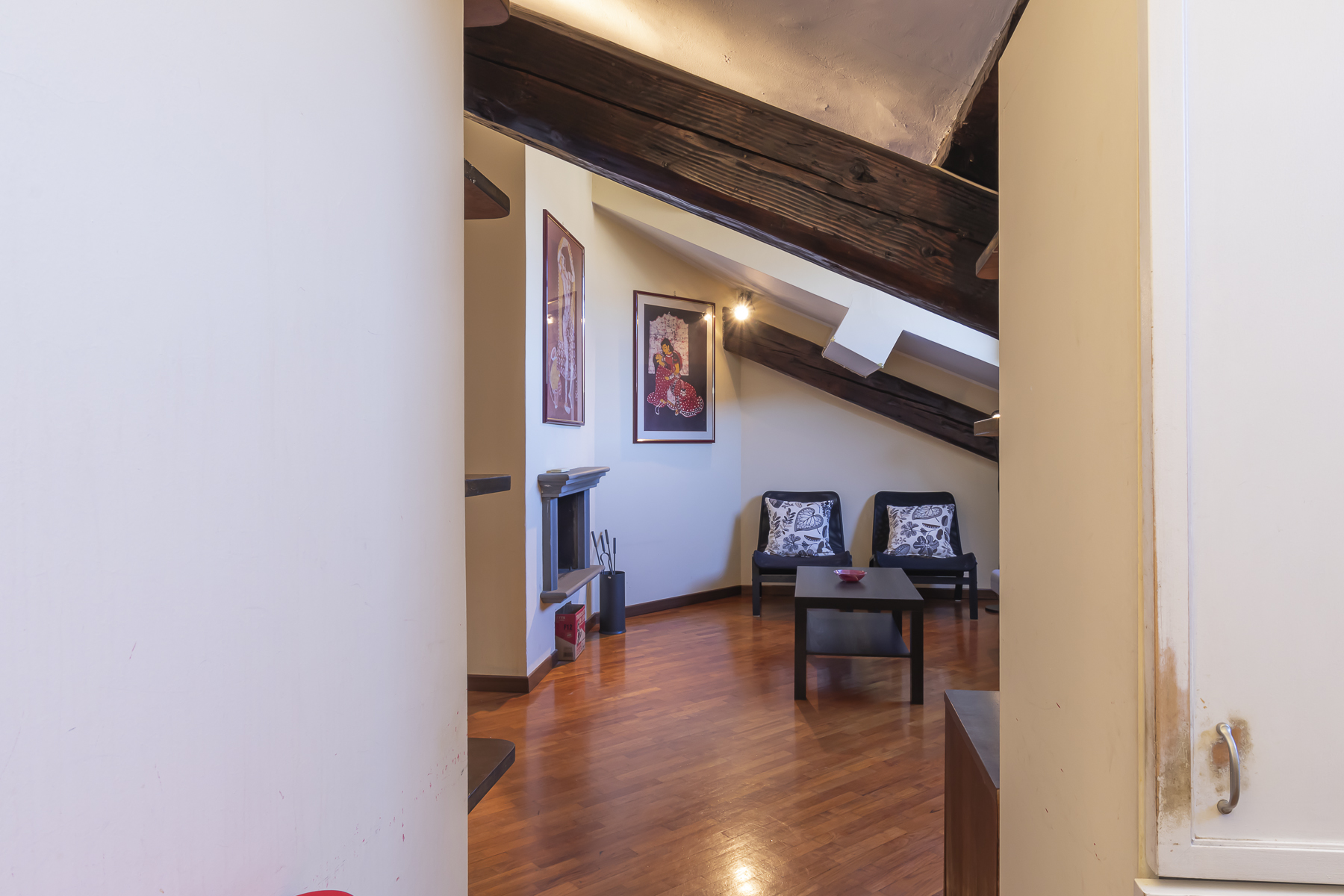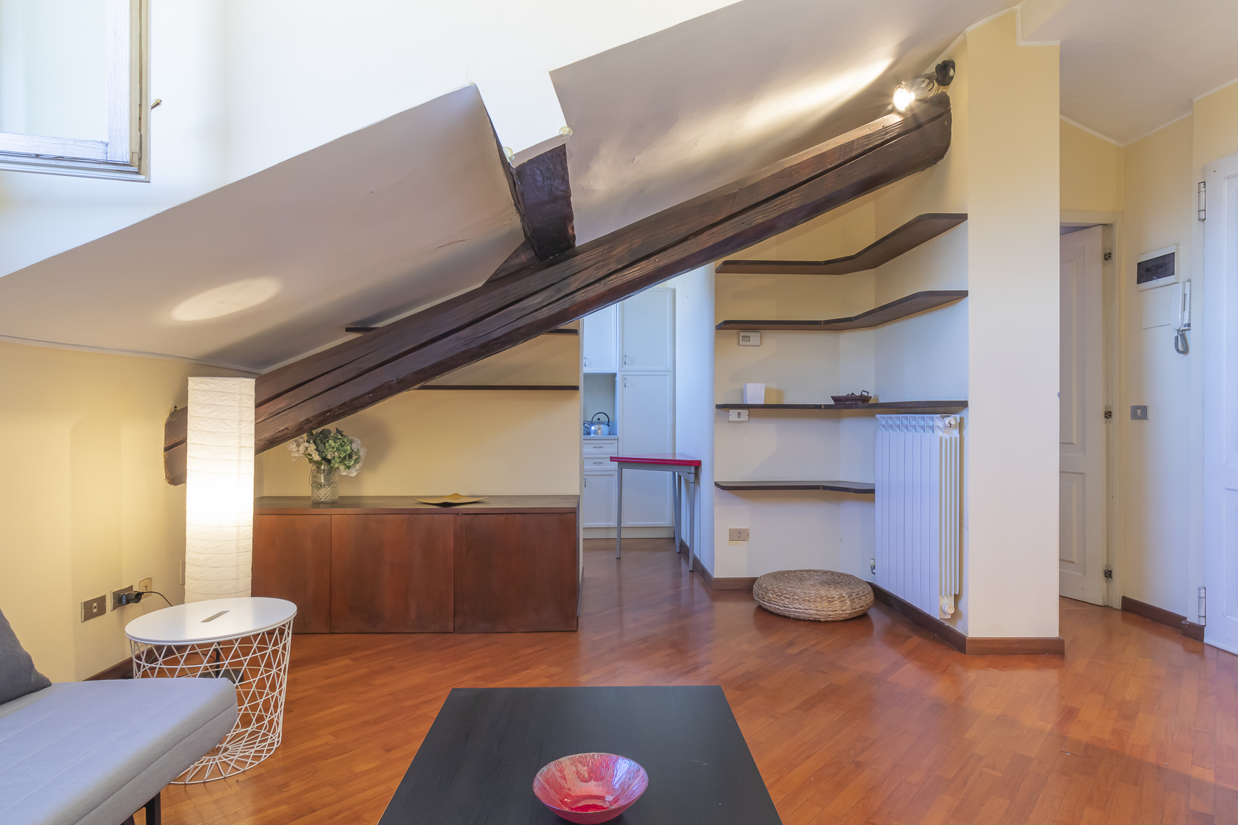 Vendiamo in esclusiva un delizioso appartamento due locali mansardato ultimo piano realizzato da un recupero di un sottotetto.