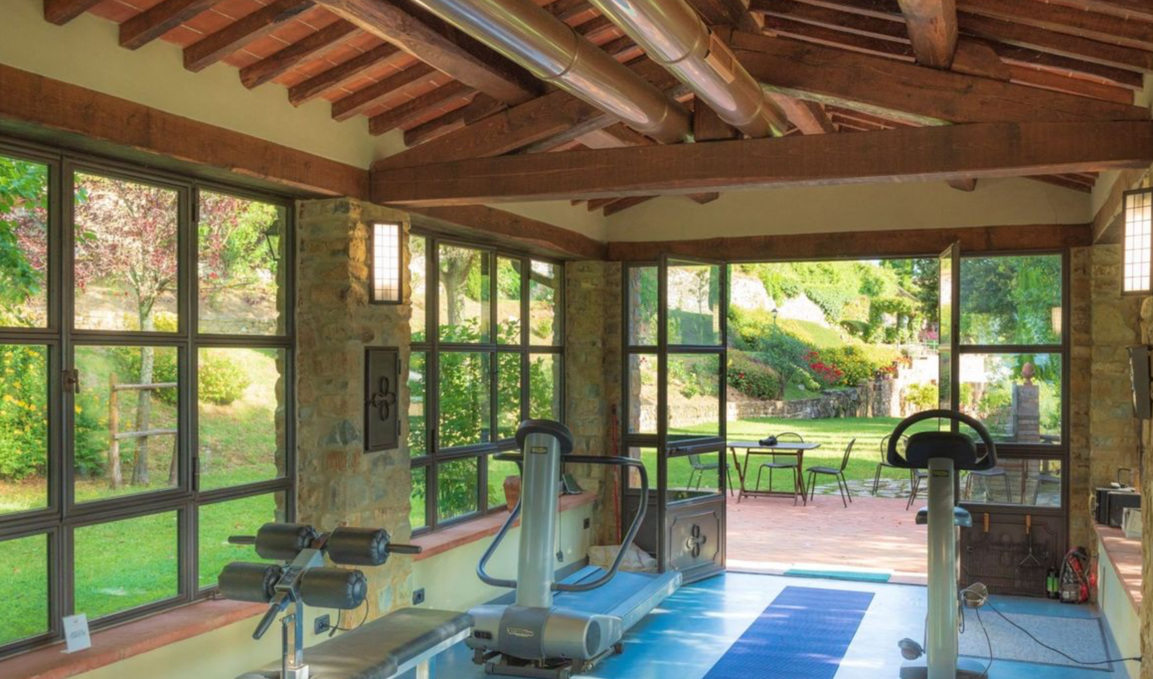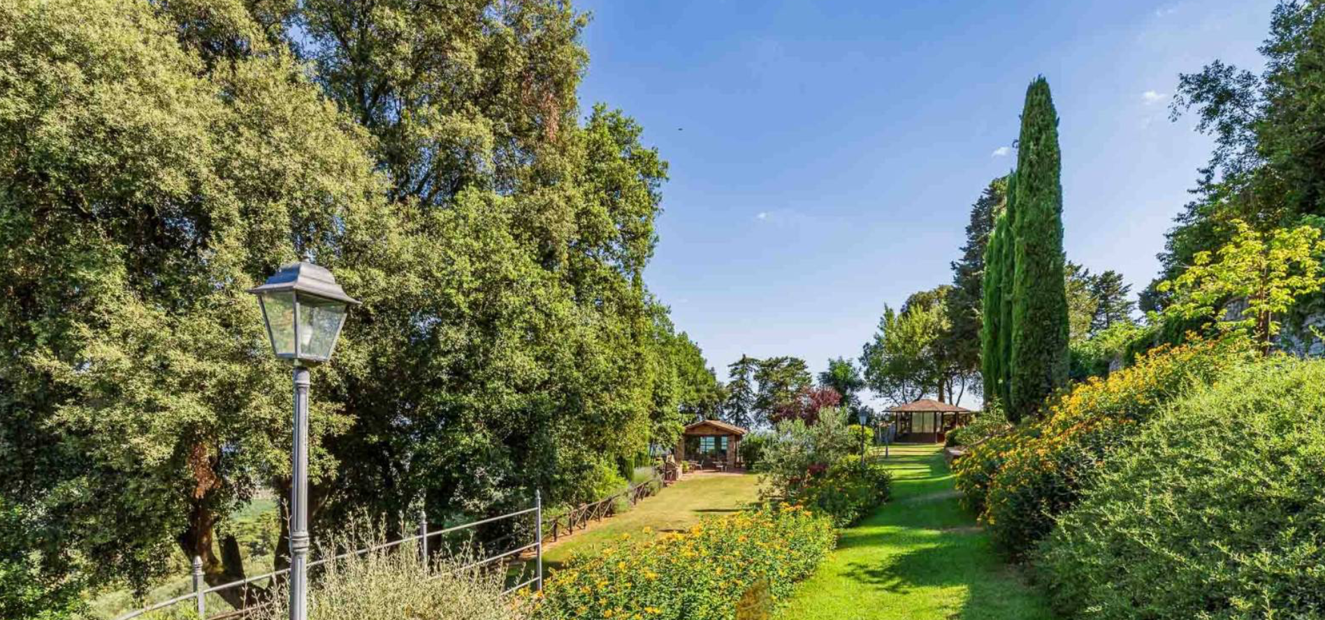 Gli esterni della proprietà si estendono per 2 ettari, vantando un uliveto con 154 piante di ulivo e un giardino di 4000 mq con piscina. Troviamo inoltre spogliatoi annessi alla zona piscina, una palestra di 70 mq ristrutturata nel 2005, una zona lavanderia e 12 posti auto.