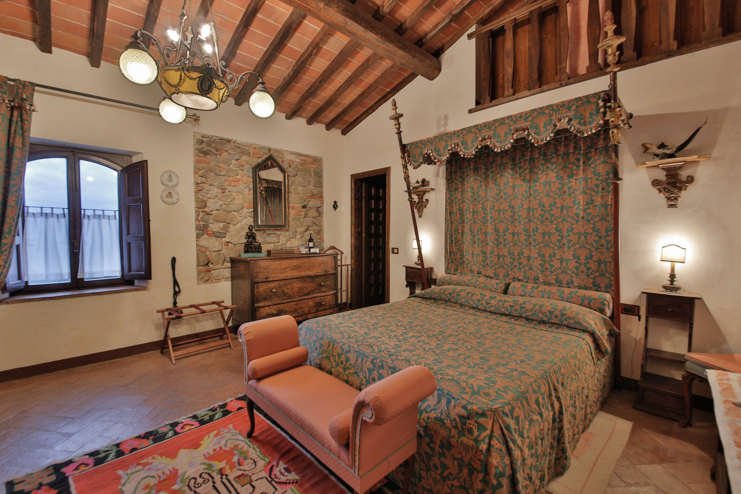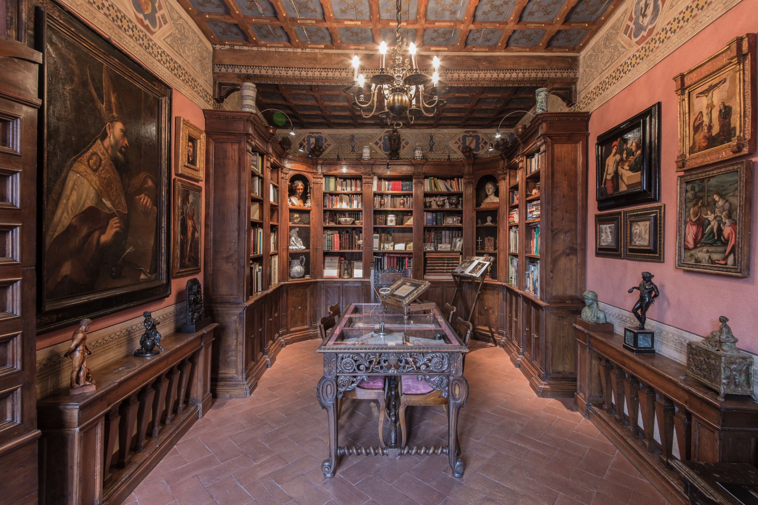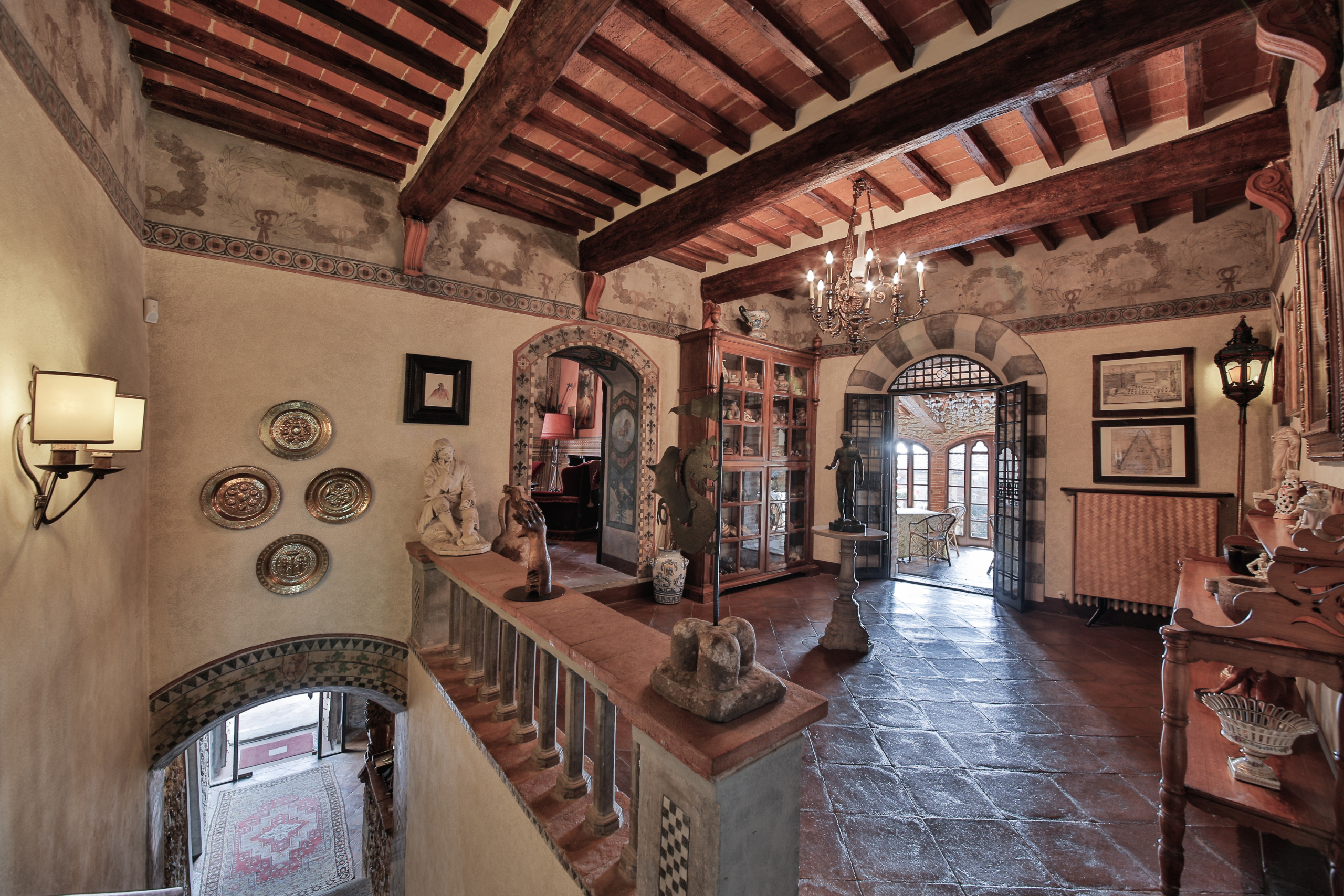 Il Castello mantiene un’atmosfera esoterica e magica, grazie anche alle numerose opere d’arte custodite al suo interno, tutte anche in vendita insieme alla proprietà: tra queste possiamo ammirare una collezione di vasi corinzi, greci, medievali ed egiziani, vasi fiamminghi dipinti, un disegno del Pontormo, ceramiche compendiarie del 1500, alcuni mobili elisabettiani, una pala d’altare del 1440 recentemente restaurata, dipinti di Caravaggio, manoscritti antichi, cammei rinascimentali, epoca ‘800 putti, gioielli etruschi, maioliche del XVII secolo, candelabri veneziani, servizi di Murano ma anche un disegno di Dalì e uno di Goethe, oltre a tante altre opere d’arte e piccoli oggetti.